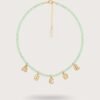 Necklace with 4mm faceted gray crystals + 18k Brazilian gold-filled initial charms. Letter size: 0.8 x 0.6 cm (customizable up to 10 letters).